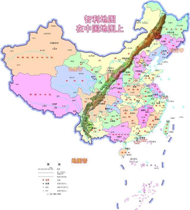 我们变通一下,拉线避开蒙古国。       从黑龙江黑河到云南腾冲斜着拉一条线,有3800多千米,不足智利的4352千米,但智利南部向东南方倾斜,与我国云南的形状吻合,也就正好能放下。巧合的是这条线也是我国的人口分界线,又称“胡焕庸”线,九成以上的人口集中在这条线以东。此外从新疆喀什到浙江和福建沿海,直线距离4500多千米,也超过智利4352千米的长度。